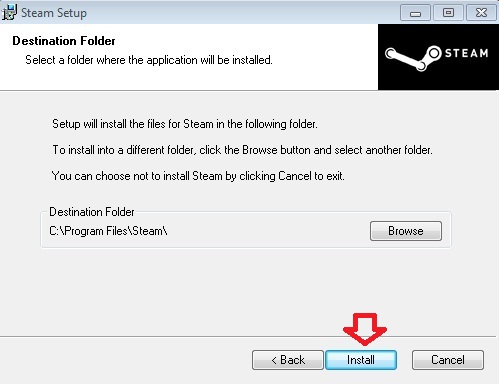 بعد از دانلود موقع نصب استیم است که به صورت زیر میباشد: