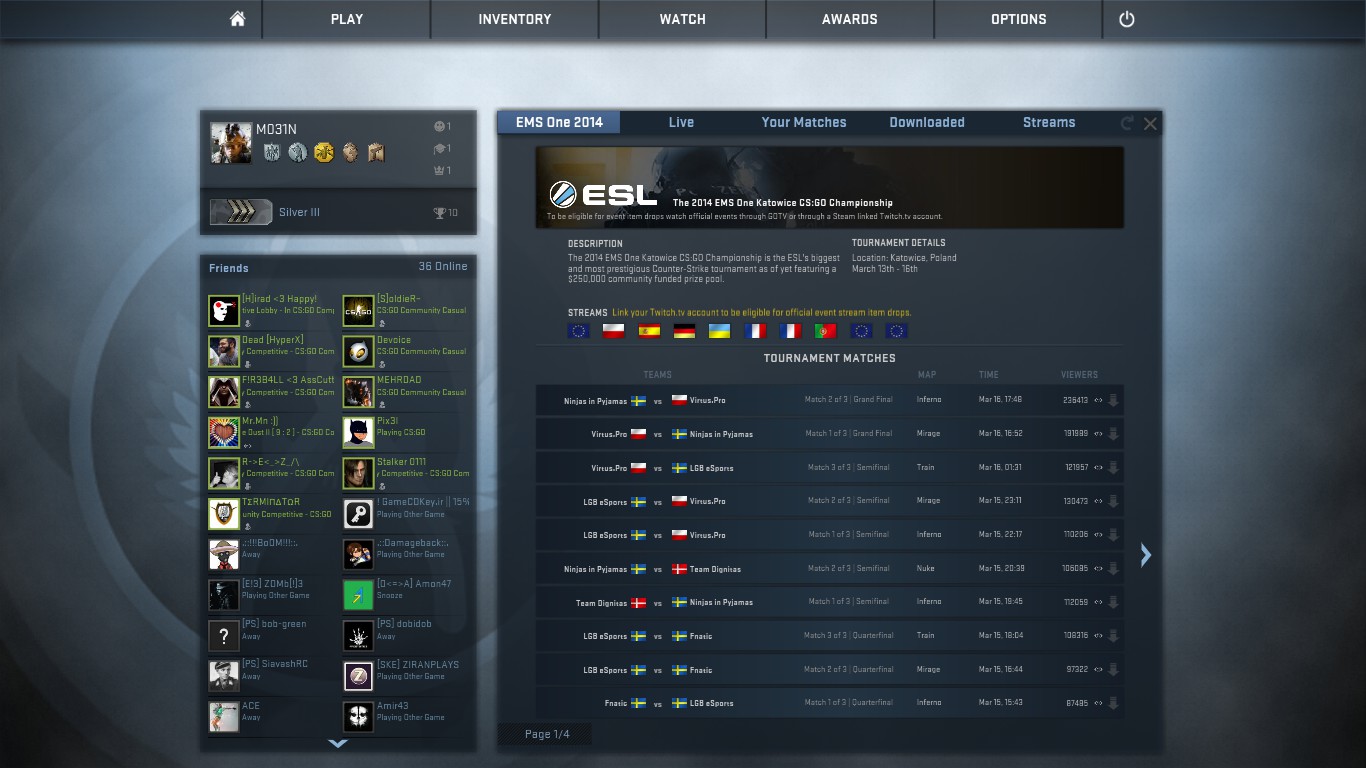 قسمت اول EMS ONE 2014:این قسمت مربوط به اخرین مسابقات تیم های بزرگ بازی میباشد که با کلیک روی هر تیم اعضای تیم آنها نمایش داده میشود و حتی شما میتوانید برای آن ها درخواست دوستی بفرستید که اکثرا درخواست شما را رد میکنند!